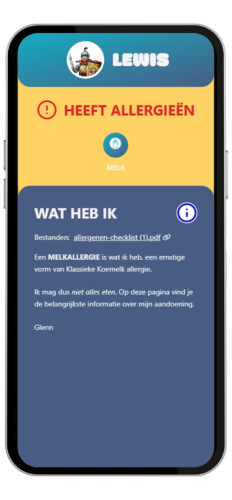 Stel dat er toch iets misgaat wil je graag dat omstanders weten wat zij moeten doen en jou direct kunnen helpen. Dat kan uitleg of een filmpje zijn over het gebruik van de EpiPen, het toedienen van specifieke medicatie of handelingen zoals net neerleggen in een stabiele zijligging etc.