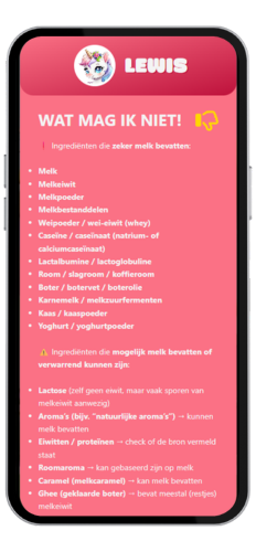 Is de pagina waarin men kan zien wat jij niet mag hebben. Dat kan een lijst van losse producten zijn of specifieke voedsel ingrediënten of bestanddelen. Hoe specifieker jij dit invult hoe beter de informatie is voor familie, vrienden, kennissen en omstanders of hulpverleners.